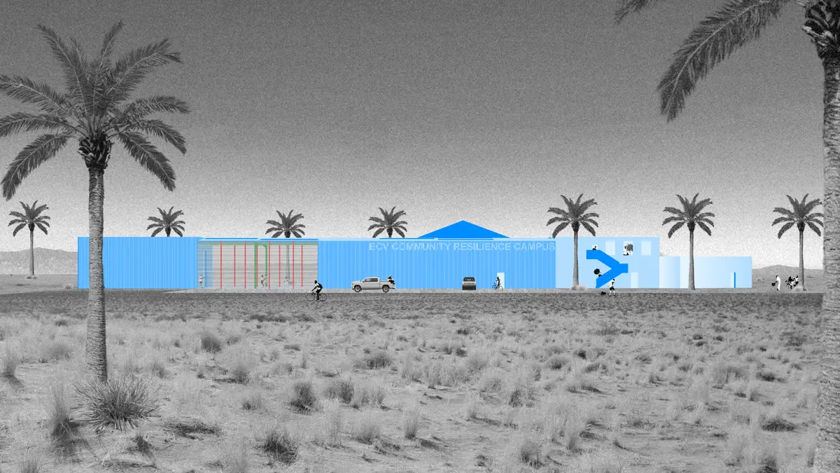 The ECV Community Resilience Campus is a 28,000sf community hub designed to serve as a safe haven during extreme heat events while also supporting long-term resilience. In addition to providing immediate relief for vulnerable populations, the center incorporates offices for non-profits, an agri-business incubator and youth-community programming, creating a year-round resource that strengthens community networks and fosters economic opportunity. The design emphasizes accessibility, adaptability, and civic identity, ensuring the facility can serve both as emergency infrastructure and as a catalyst for ongoing community development.