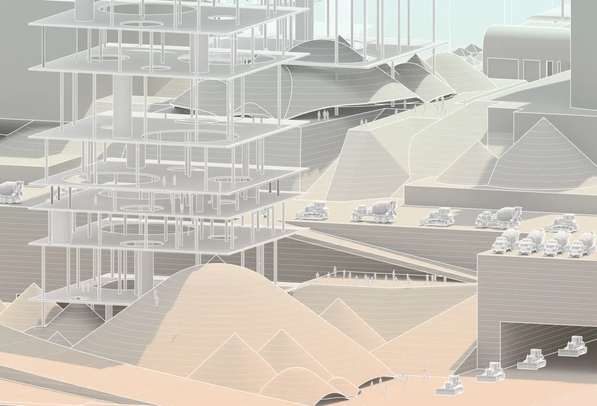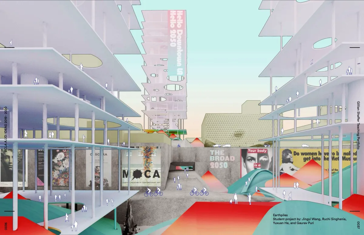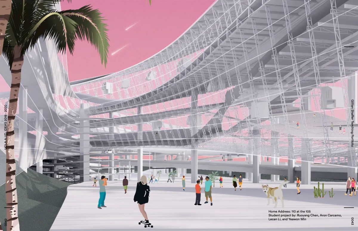 The 2020 IDEAS Urban Strategy Studio explored LA-ND—land ownership, development, planning, scarcity, disaster, and redevelopment—as the central story of Los Angeles. Taking inspiration from Olmsted and Bartholomew’s 1930 vision of an “emerald necklace” of parks along the LA River, the studio examined how land can shape regional identity and urban culture. Working with stakeholders ranging from community groups to real estate investors, students developed radical visions for LA’s future across three themes: embracing nature as a medium for growth, designing resilient infrastructure in the face of climate risk, and inventing new building types that maximize limited land in a city resistant to densification.