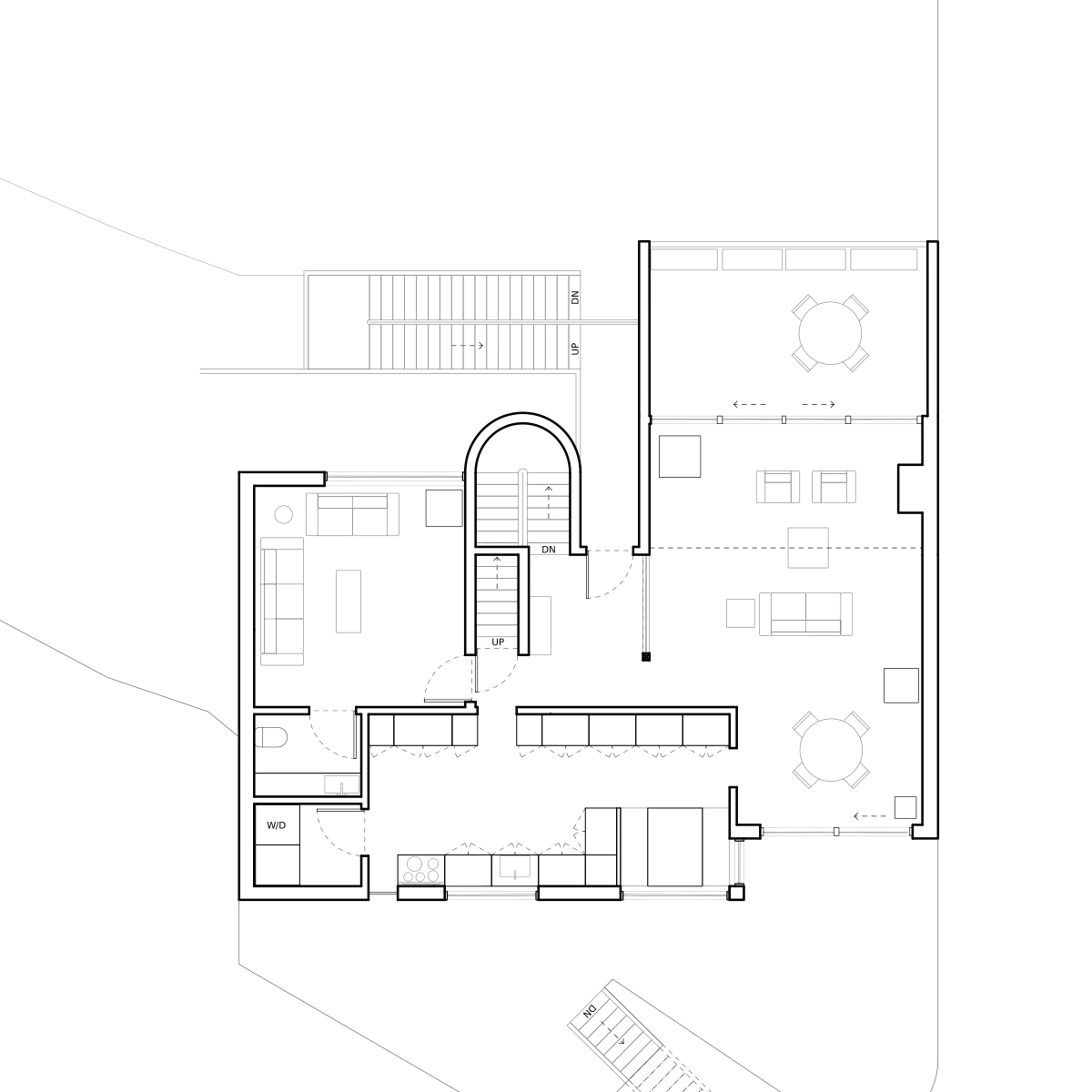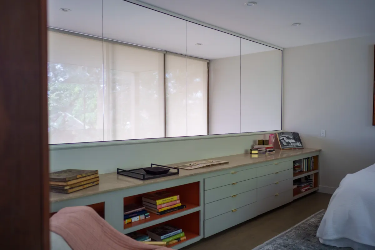 This mid-century hillside residence, originally designed by a protégé of Richard Neutra, has been reimagined as a contemporary retreat that both preserves and elevates its modernist origins. Stripped to its structure and thoughtfully rebuilt, the design introduces a lofted master suite beneath the iconic butterfly roof, creating a treetop perch connected to the double-height living room below. Glass partitions, integrated storage, and raw finishes play against the precision of glass and steel, while wood and brass accents strike a balance of restraint and warmth.