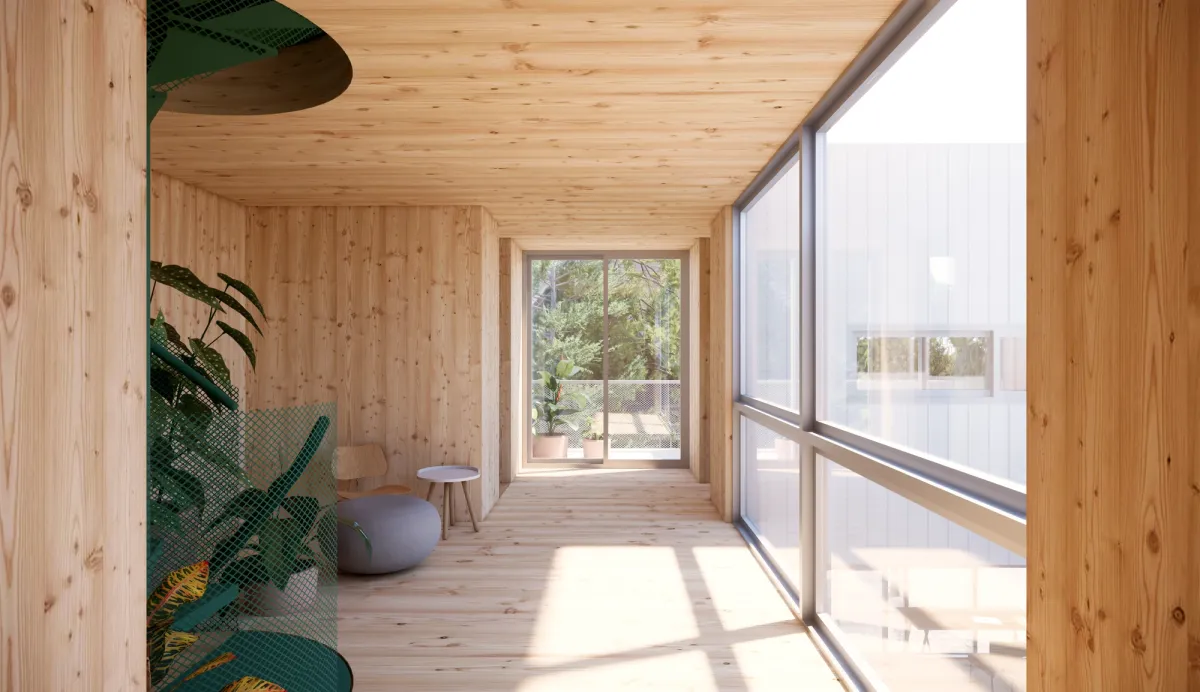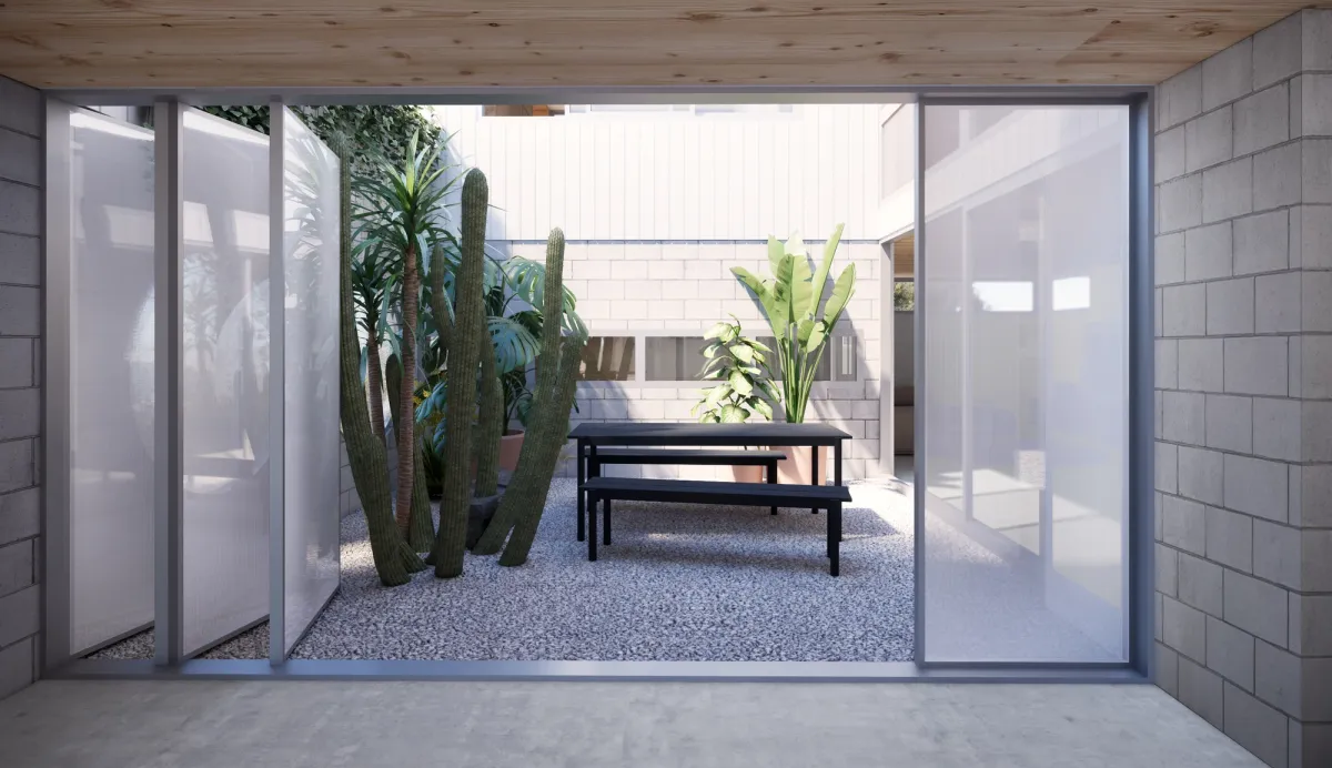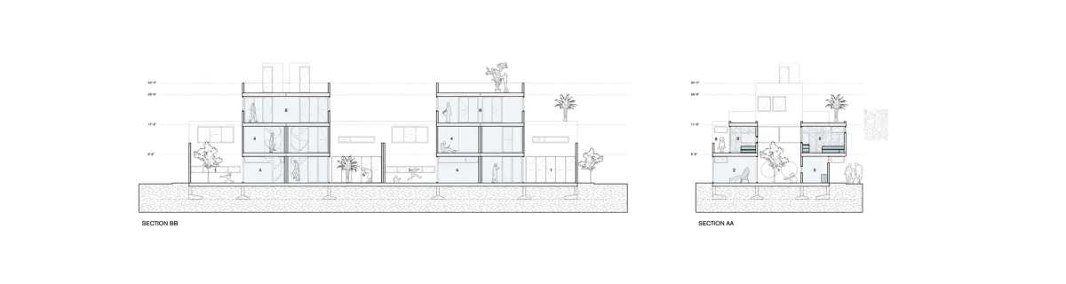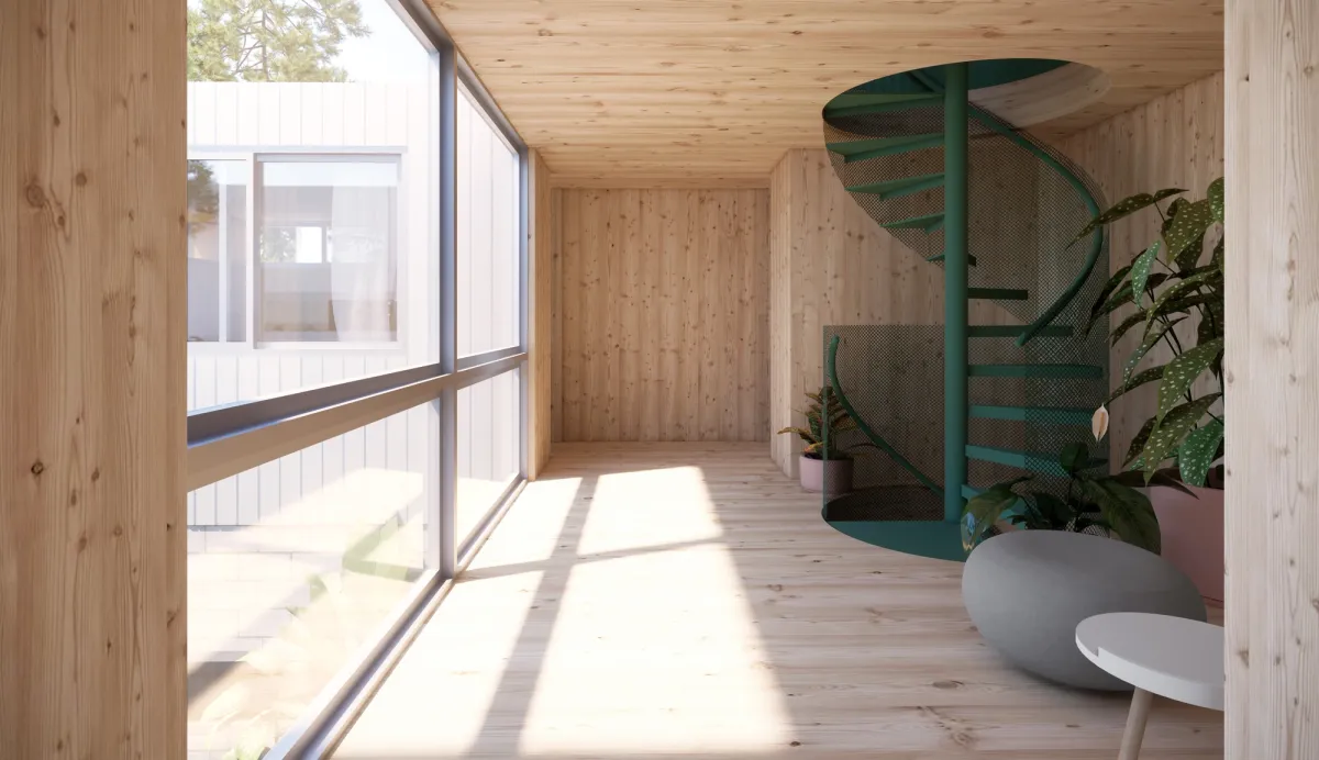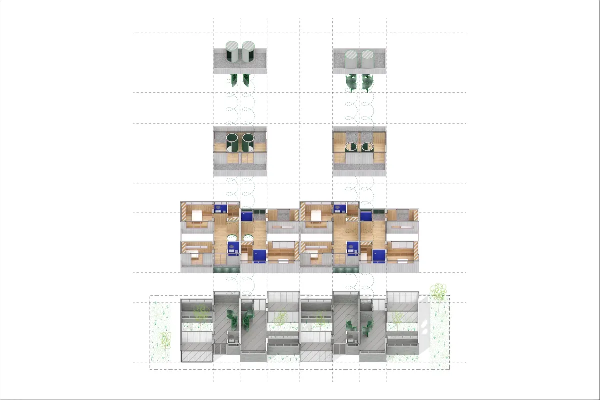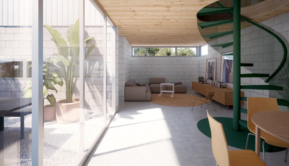 A Part, Together: Mutual Living for Los Angeles reimagines the single-family house as a framework for collective life. Organized around a generous courtyard, the design combines site-built concrete block walls with prefabricated mass-timber boxes to create flexible, reconfigurable spaces that shift between living, working, and hosting. Shared rooms, adaptable suites, and abundant terraces encourage communal use, while built-in storage and private retreats provide balance. From the open ground floor to the upper-level common room and roof terrace, the project offers a model for housing that is both adaptable and deeply social, reflecting the evolving needs of life and densification in Los Angeles.